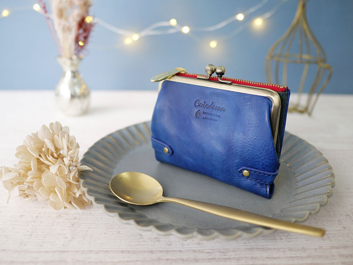 キュイールデソン コンパクトなのに大容量な二つ折り財布 上質レザーの魅力的ながま口財布 《ブルー》CU190BL