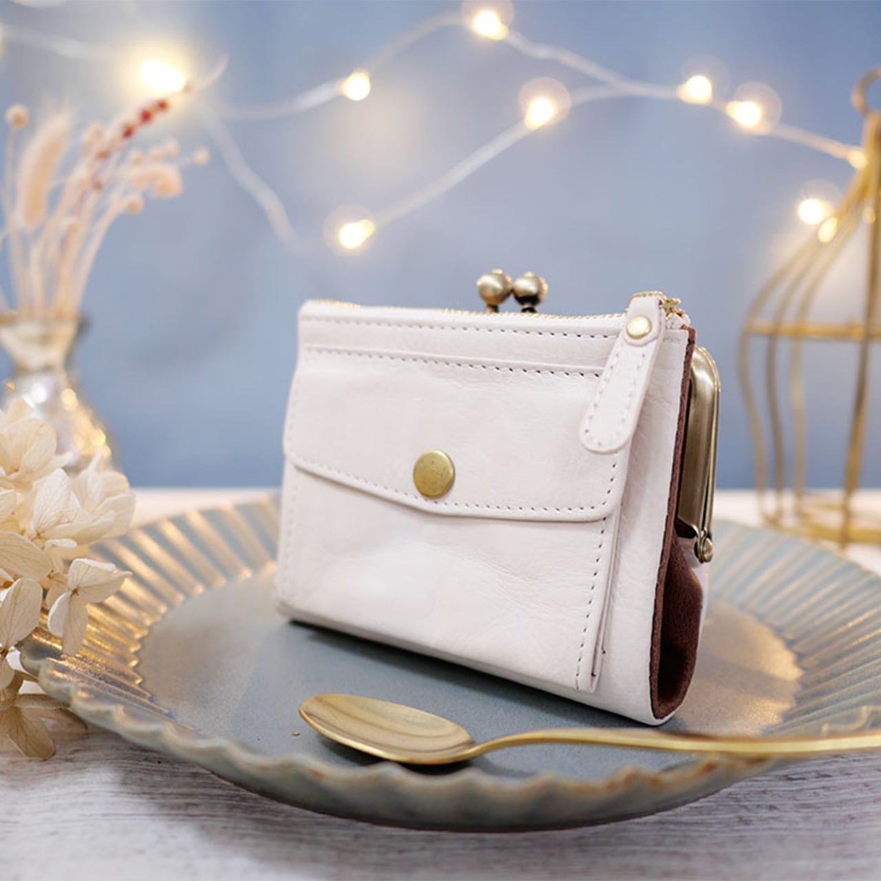 コピー:キュイールデソン コンパクトなのに大容量な二つ折り財布 誰かに見せたくなる がま口 財布 《アイボリー》CU014IV